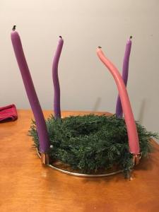 I had a good laugh, and I shared the photo and a lot of us had a good laugh at it, particularly when the candles are put into the holders in the wreath. It looks like Tim Burton, Edvard Munch, Salvador Dali, and Dr. Seuss designed an Advent wreath. It still makes me laugh. But as I look at it, I’m not sure that I want to replace the candles. The wreath is all messed up and I wonder if there is something in there.